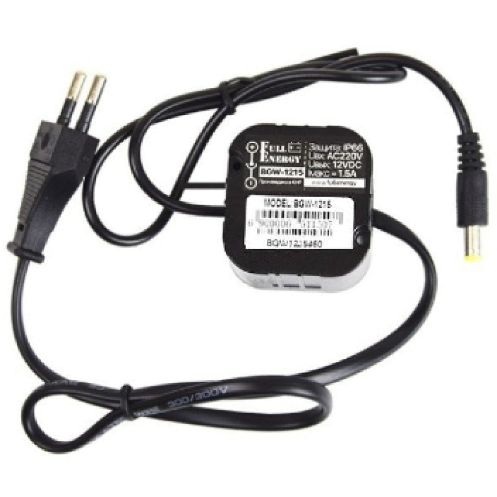 блок живлення для монтажу в підрозетник. Вихід: +12 В / 1.5 А, роз'єм живлення; вхід: ~220 В, мережевий шнур з вилкою в розетку. Довжина кабеля: 40 см (від БЖ до роз'єму) + 40 см (від БЖ до вилки). IP66. Розміри 43 х 40 х 27 мм