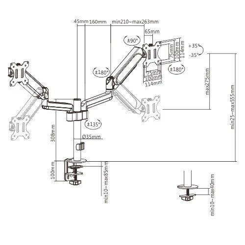 ● Міцні регульовані газові пружини підходять для моніторів вагою 1-9 кг;