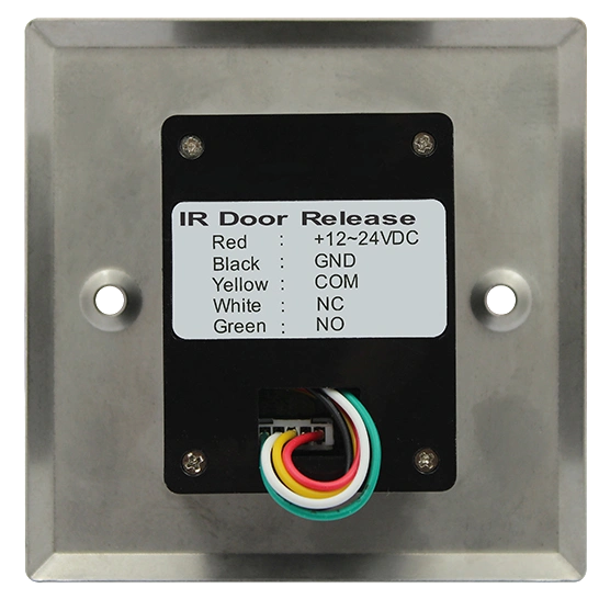 Розміри: 86х86х24 (мм); Живлення: 12-24В постійного струму 3А; Вихідний контакт: NO/NC/COM; Механічний термін служби: 500 000 спрацьовувань; Світлодіодний індикатор: синій світлодіод (режим очікування), зелений (спрацьовування); Спосіб монтажу: вбудований; Матеріал: нержавіюча сталь завтовшки 0,7 мм; Робоча температура: -20℃~+55℃.