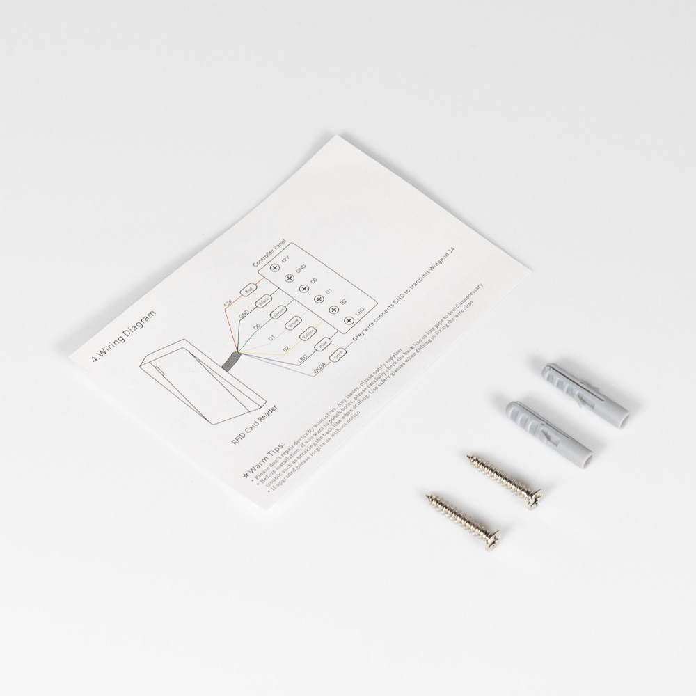 Вуличний водонепроникний зчитувач карток та брелоків стандарту EM-Marine (125kHz); дальність зчитування до 5 см; інтерфейс Wiegand 26/34; світлова та звукова індикація; живлення 12 В; споживання струму 30 мА; пластиковий корпус; ступінь захисту IP68; робоча температура від -20°C до +60°C; розміри 107 / 47 / 20 мм; вага 110 г