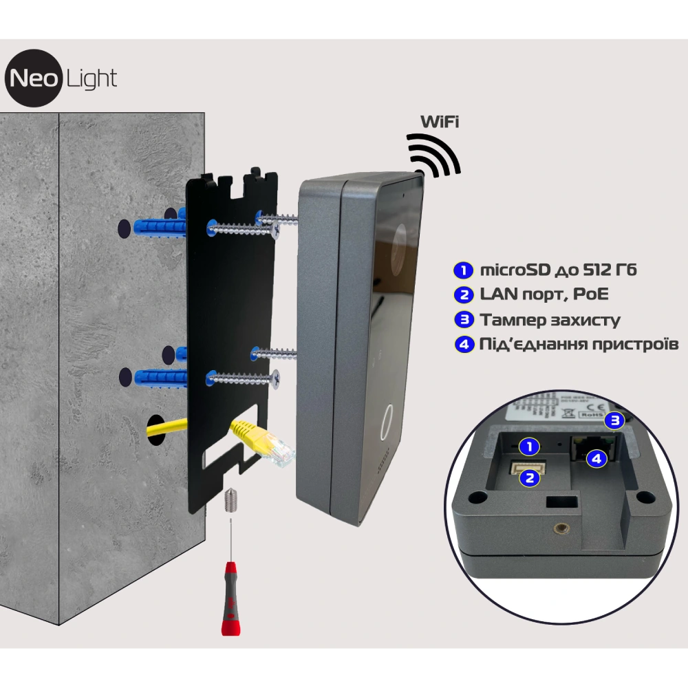● Мережевий інтерфейс Wi-Fi 2,4ГГц, RJ-45, 10М/100М;