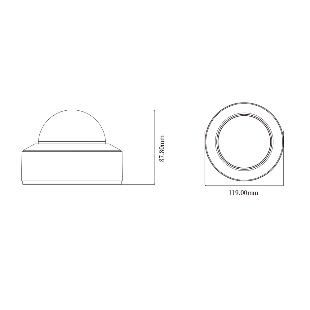 5Mp IP-відеокамера з функціями аналітики; матриця 1/2.7″ CMOS; роздільна здатність 5Mp (2592*1944); фіксований об’єктив f=2.8 мм; кути огляду 99.87° горизонтальний, 70.36° вертикальний; ІЧ-підсвічування до 30 м; відеокомпресія H.265+/H.265/H.264+/H.264; чутливість 0.002 Люкс @F1.6, AGC увімкнено, 0 Люкс з ІЧ; 3 відеопотоки; мережа: RJ45 100M; ONVIF; живлення DC12V/PoE, споживання 6 Вт; 1 аудіовхід, 1 аудіовихід, вбудований мікрофон; 1 тривожний вхід, 1 тривожний вихід; запис на microSD карту (до 256 Гб); ступінь захисту IP67; габаритні розміри Ø 119 / 87.8 мм; вага 0.65 кг