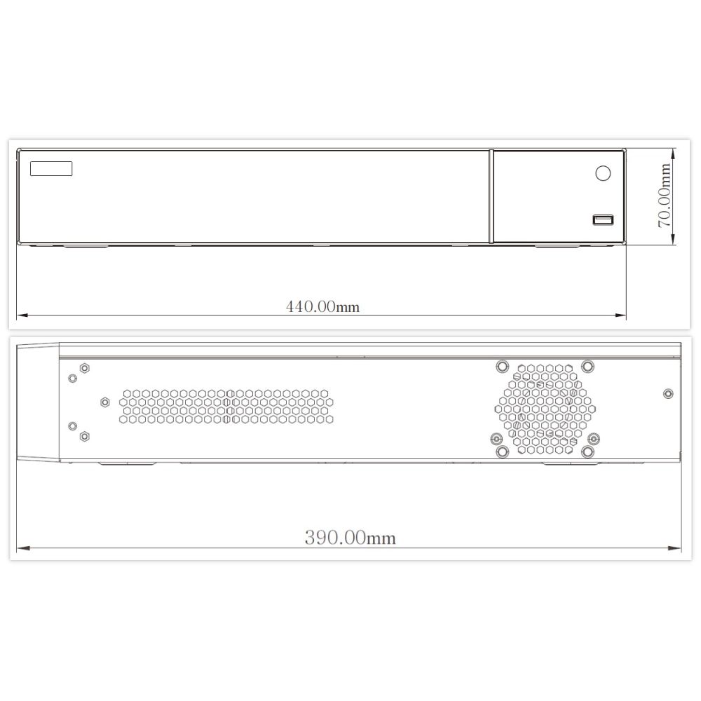 32-канальний мережевий відеореєстратор з підтримкою інтелектуальної відеоаналітики, з максимальною роздільною здатністю 8MP; відеокодек H.265S, H.265+, H.265, H.264; запис: 8MP / 6MP / 5MP / 4MP / 3MP / 1080P / 960P / 720P @ 25fps; вхідний/вихідний потоки 192Mbps/192Mbps; відеовихід: HDMI (4K), VGA (Full HD); аудіо: вхід RCA x1 / вихід RCA x1; тривожні: вхід 4/вихід 1; перегляд архіву камер одночасно: локально/мережею 16/16; мережа: RJ45 1000Mbps, USB 2.0 x2, USB 3.0 x1, HDD: SATA x4 до 10 ТБ; живлення ATX 200W; розміри 440 / 390 / 70 мм